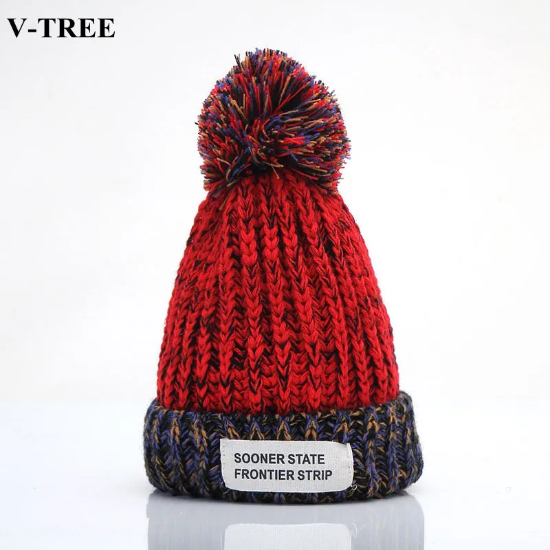Зимние детские шапки, модные шапки с нашивками для девочек, разноцветная шерстяная шапка для мальчиков, плотная теплая вязаная детская шапк...
