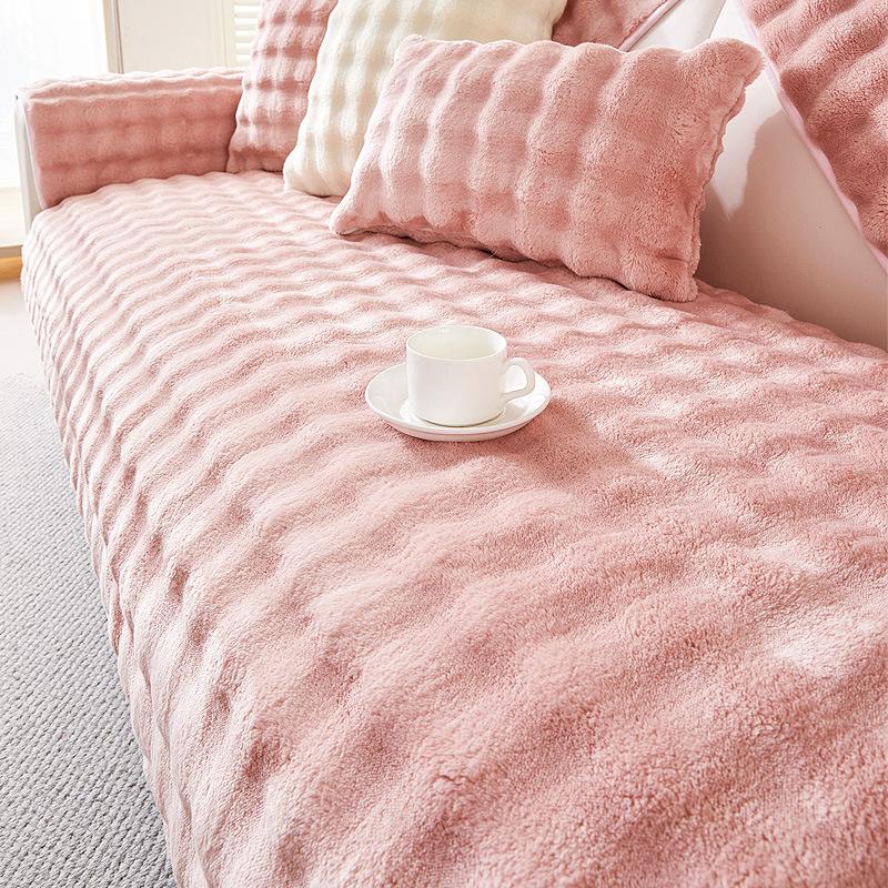 Зимние диванные подушки Зимние плюшевые нескользящие теплые подушки Утолщенные фланелевые пузырьковые высококачественные легкие роскошные диванные подушки 70*210cm розовый