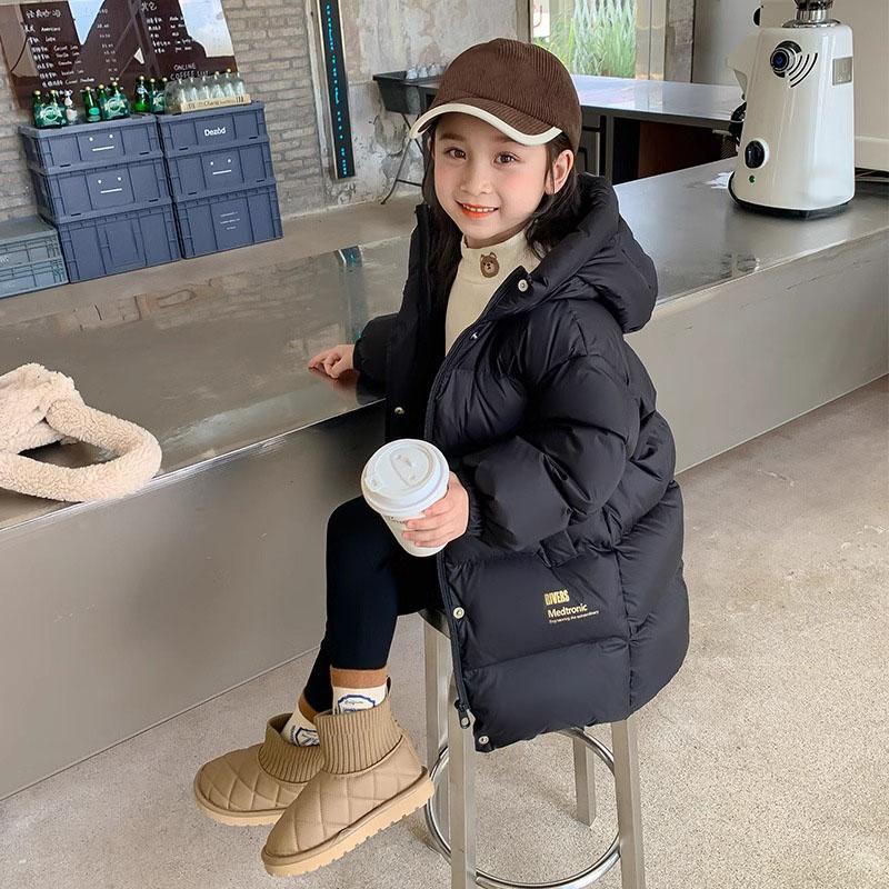Зимние длинные толстые теплые парки для девочек с карманами, детское пальто с капюшоном, верхняя одежда, два цвета 100cm чёрный