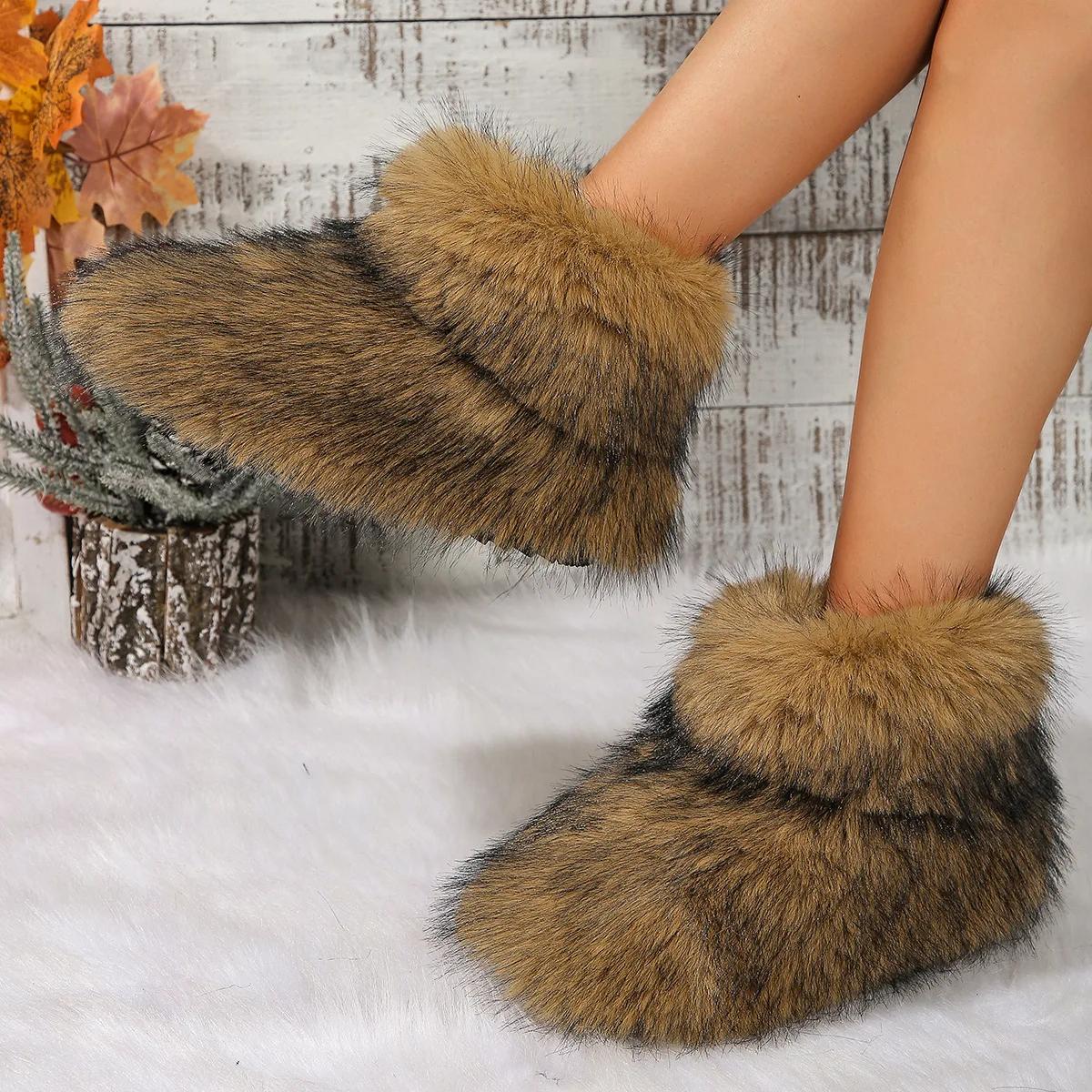 Зимние женские ботинки на пушистом искусственном лисьем меху, женские плюшевые теплые зимние ботинки, роскошная обувь для девочек, ботинки на меховом меху, модная зимняя обувь 36 серый
