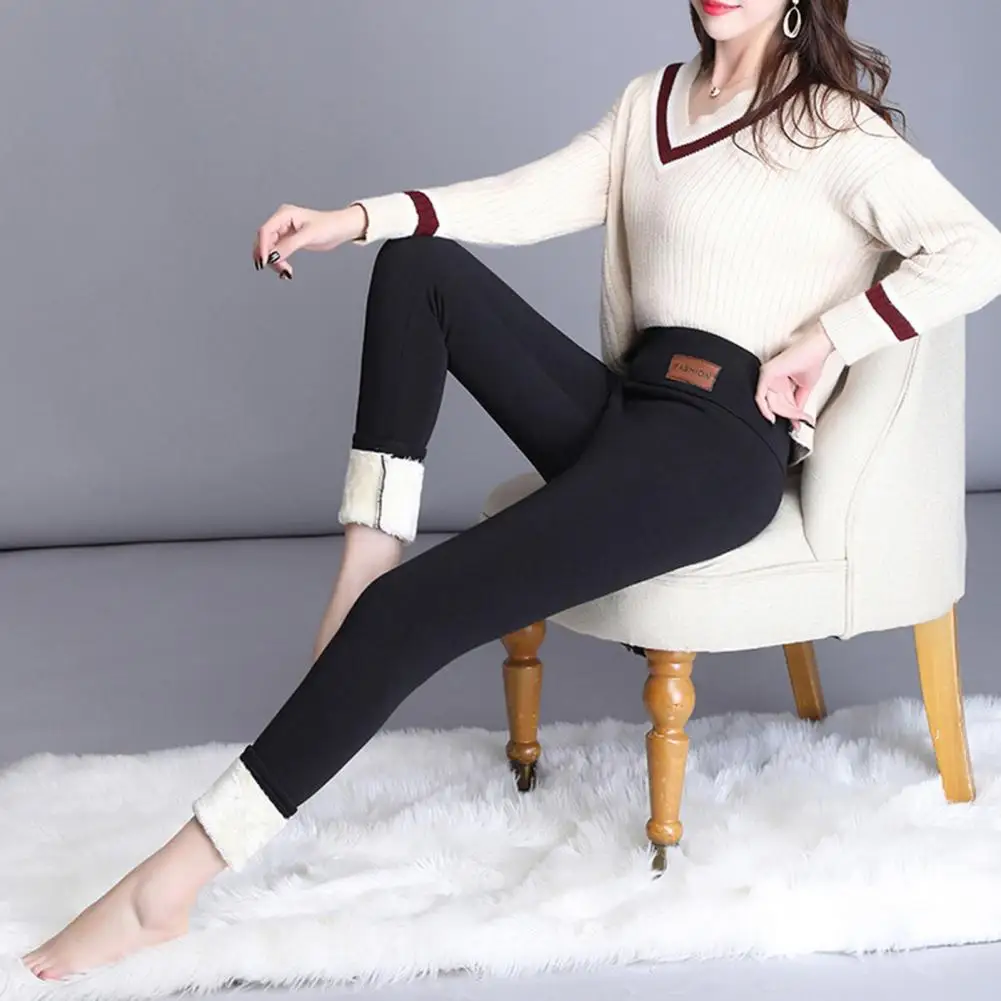 Зимние женские леггинсы, теплые брюки, леггинсы с высокой талией, женские однотонные леггинсы, удобные теплые эластичные леггинсы