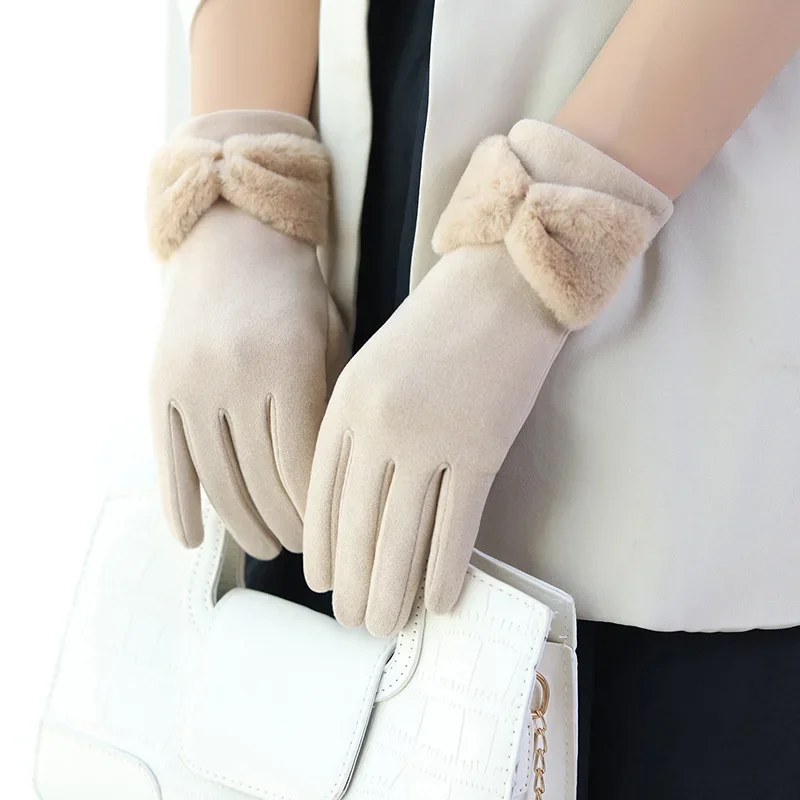 Зимние женские перчатки с бантом, элегантные женские сенсорные перчатки большого размера