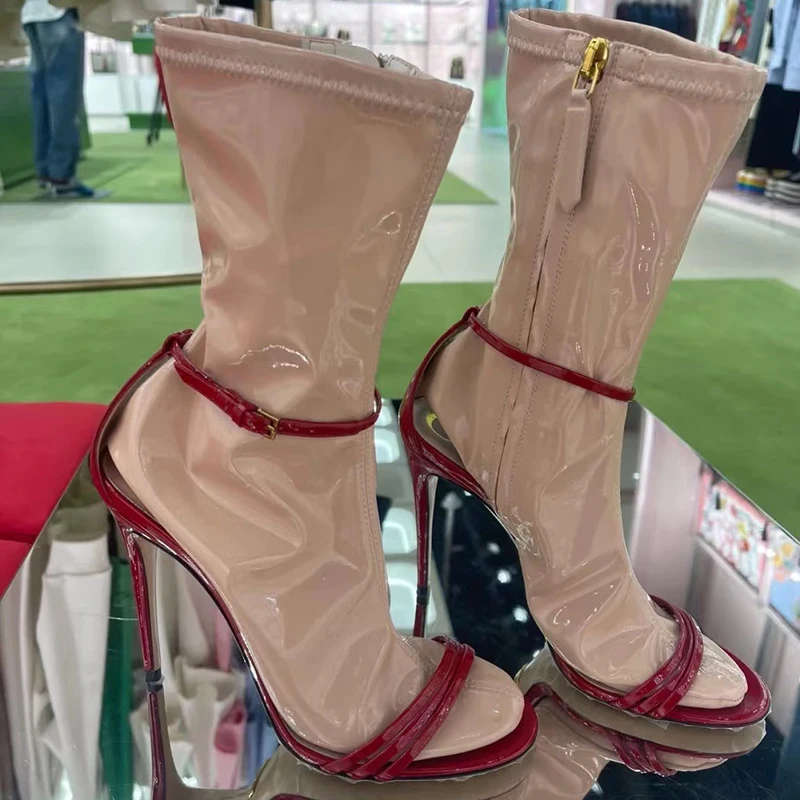 Зимние женские сапоги до середины икры на высоком каблуке с застежкой-молнией и пряжкой
