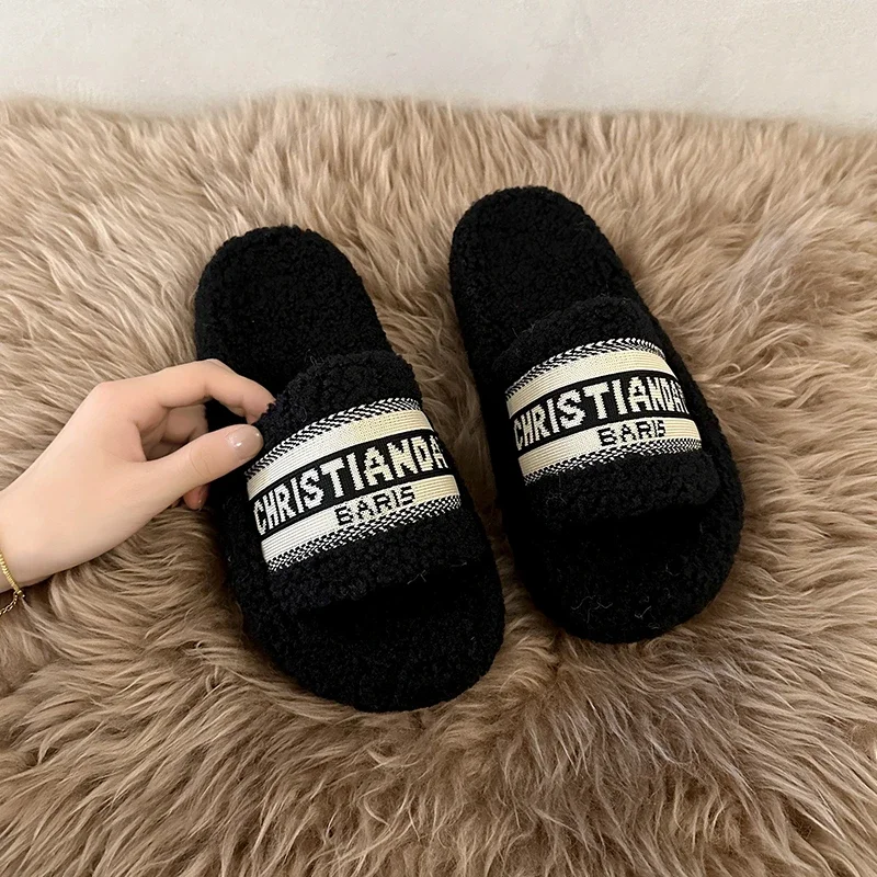 Зимние женские тапочки на плоской подошве модный дизайн Роскошные брендовые теплые сланцы с буквами домашние хлопковые тапочки
