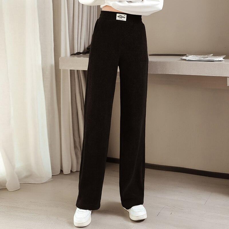 Зимние корейские модные широкие уличные брюки однотонные брюки плюс бархатные теплые повседневные мешковатые вельветовые женские брюки с высокой талией XXXXL чёрный