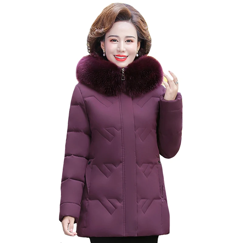 Зимние куртки для женщин среднего возраста, Короткое женское пальто с капюшоном, меховой воротник, толстые женские парки для мам