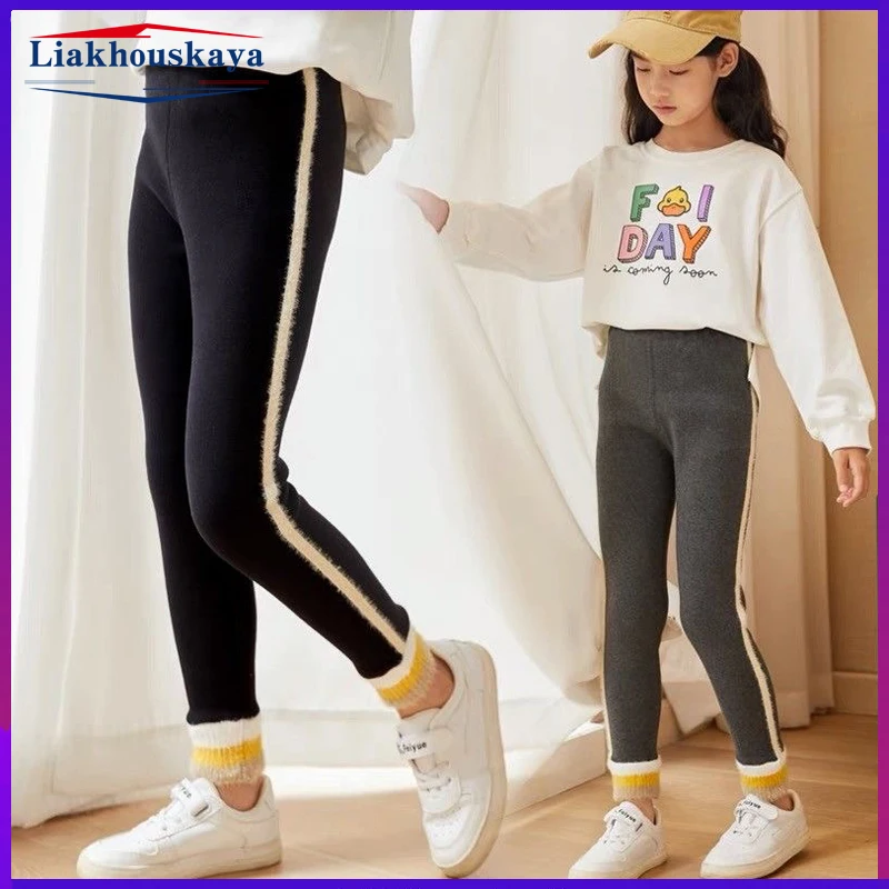 Зимние леггинсы для девочек 90-140 см, флисовые Детские утепленные брюки, Осенние бархатные брюки, одежда для маленьких девочек