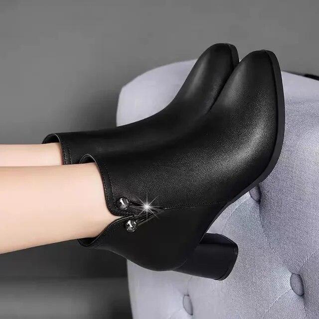 Зимние модные женские ботильоны на танкетке, обувь на увеличенном росте, ботильоны на высоком каблуке, ботинки со стразами 38 чёрный