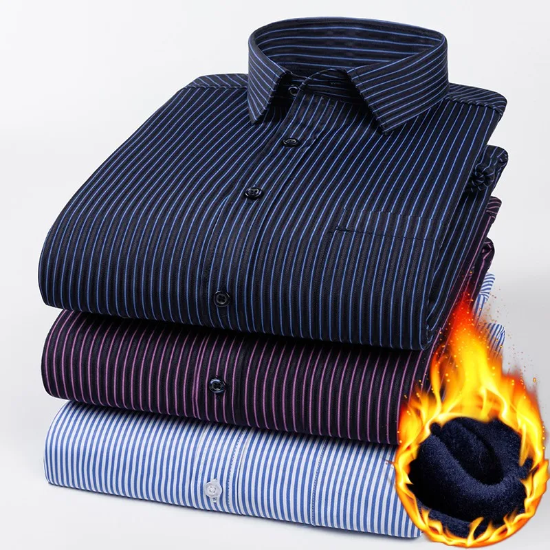 Зимние мужские модные теплые клетчатые рубашки с длинным рукавом, мягкая флисовая Повседневная фланелевая теплая рубашка в полоску