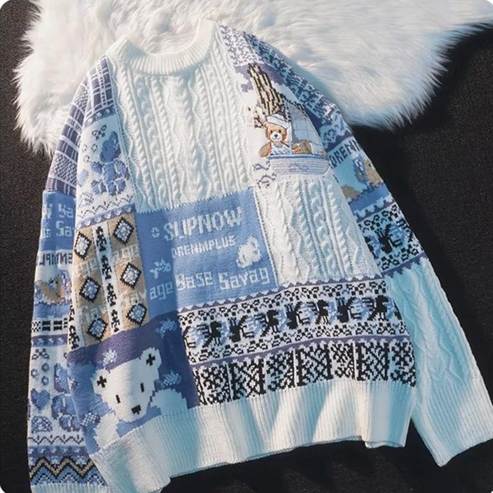 Зимние мужские свитера с высоким воротом, рождественские вязаные свитера с изображением медведя, повседневные свитера, мужские трикотажные изделия, пуловеры в стиле пэчворк для мужчин M синий