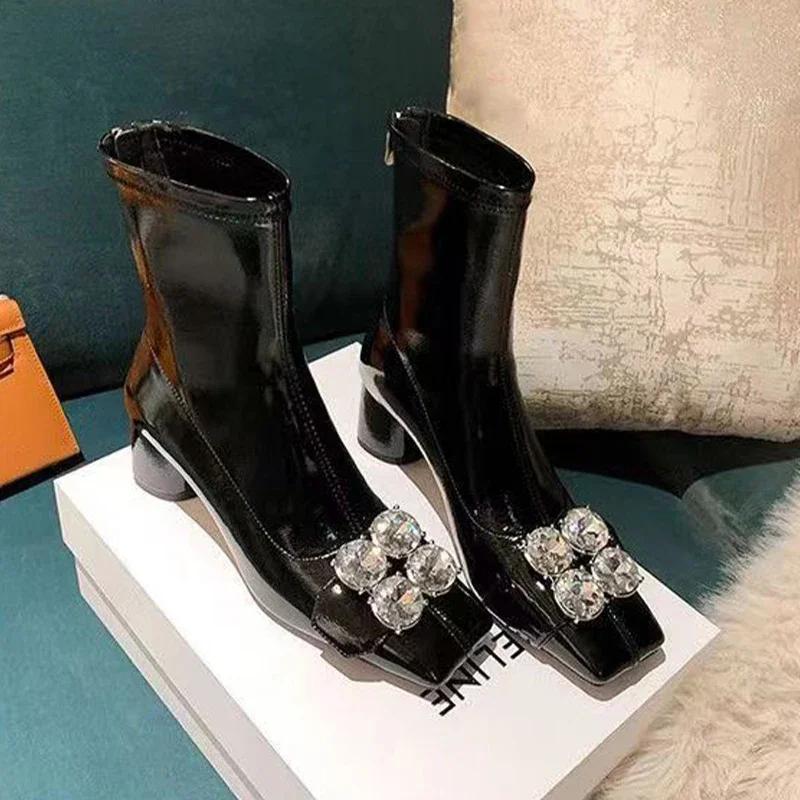 Зимние новые дизайнерские ботинки Chelsea Crystal, женские ботильоны для снега, повседневная обувь на высоком каблуке, сексуальные туфли-лодочки в стиле гладиатор в готическом стиле 35