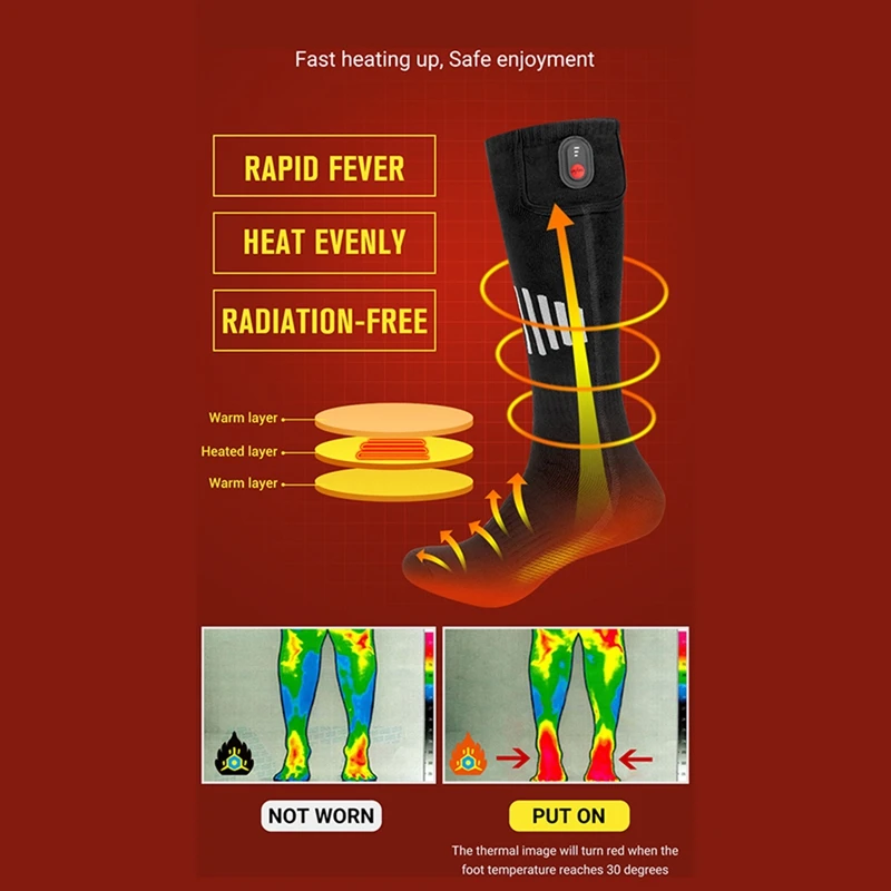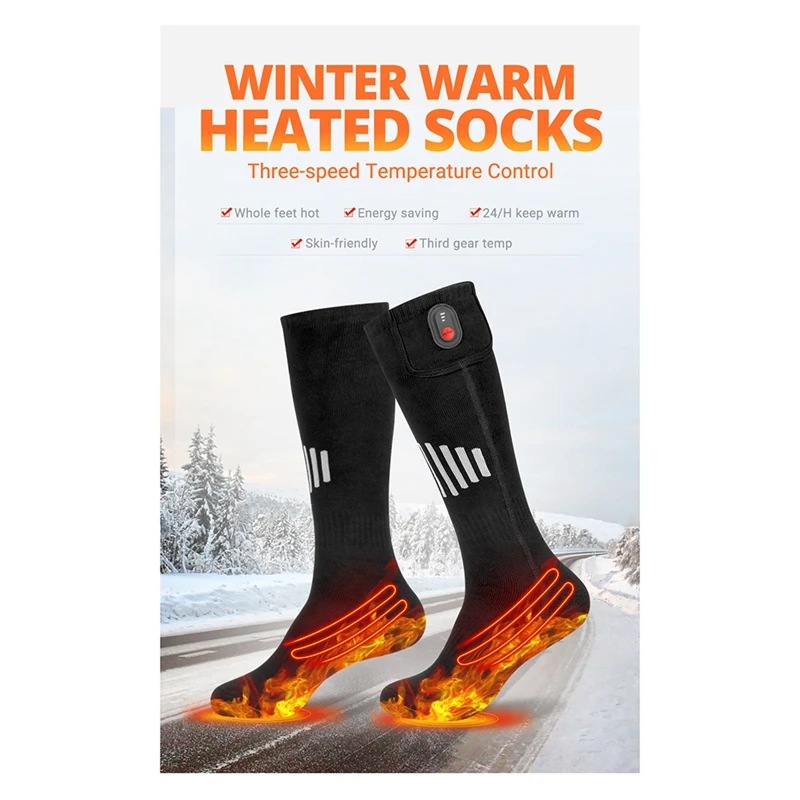 Зимние носки с подогревом для снега, носки с подогревом батареи, зимние лыжные носки с подогревом, носки с функцией подогрева, прочные черные