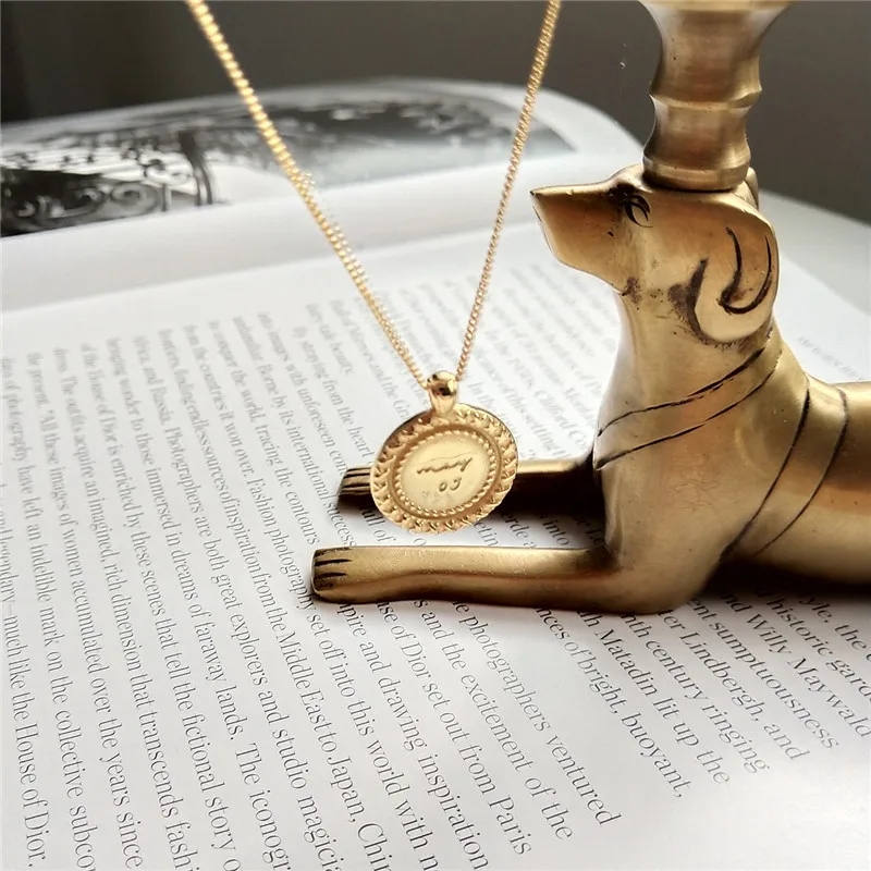 POFUNUO Real 925 Sterling Silver Women Fashion Luxury Exquisite Coin Tag Pendant Necklace Gold Vintage Clavicalis Niche Chokers