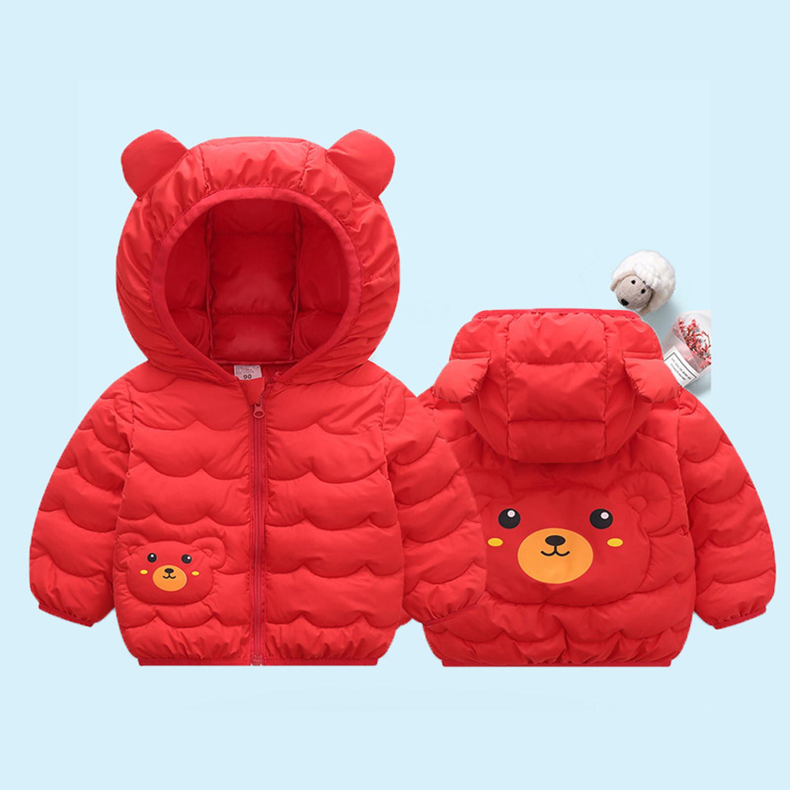 Зимние пальто для мальчиков и девочек, детская куртка на молнии с толстыми ушами, зимняя толстовка с капюшоном, одежда 90 красный