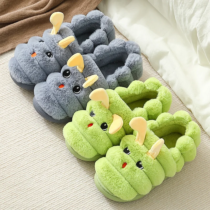 Зимние теплые женские домашние Тапочки хлопковые плюшевые Мультяшные гусеницы мужские парные пушистые туфли пушистые милые животные Неск...