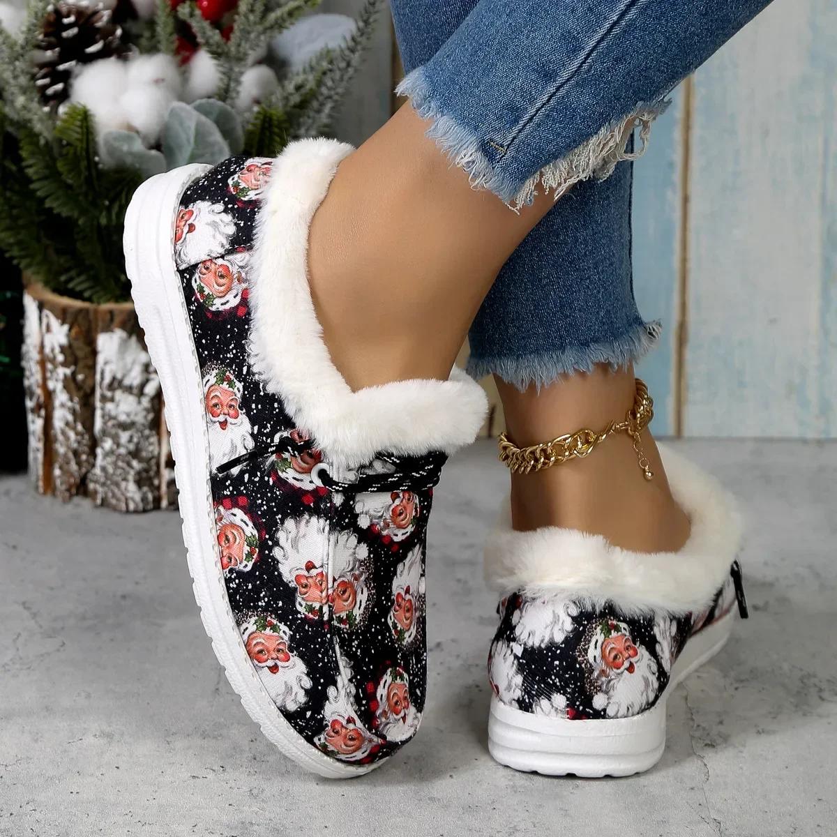 Зимние теплые плюшевые туфли на плоской подошве для женщин, новая модная повседневная обувь с принтом, женская легкая удобная теплая обувь из искусственного меха на толстом плюше 36 чёрный