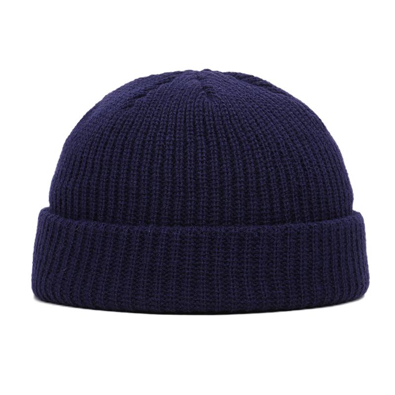 Зимние теплые шерстяные шапки-бини унисекс, шапка-рыбак для мужчин, короткая вязаная шапка-часы с манжетами, шапки-траулеры в стиле хип-хоп темно-синий