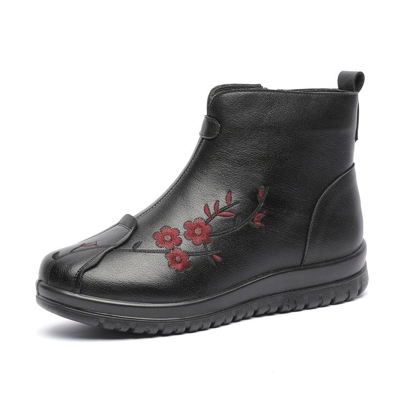 Зимние толстые плюшевые теплые женские черные короткие ботинки из натуральной кожи мягкие повседневные туфли на плоской подошве для мам водонепроницаемые нескользящие зимние ботинки 37 чёрный