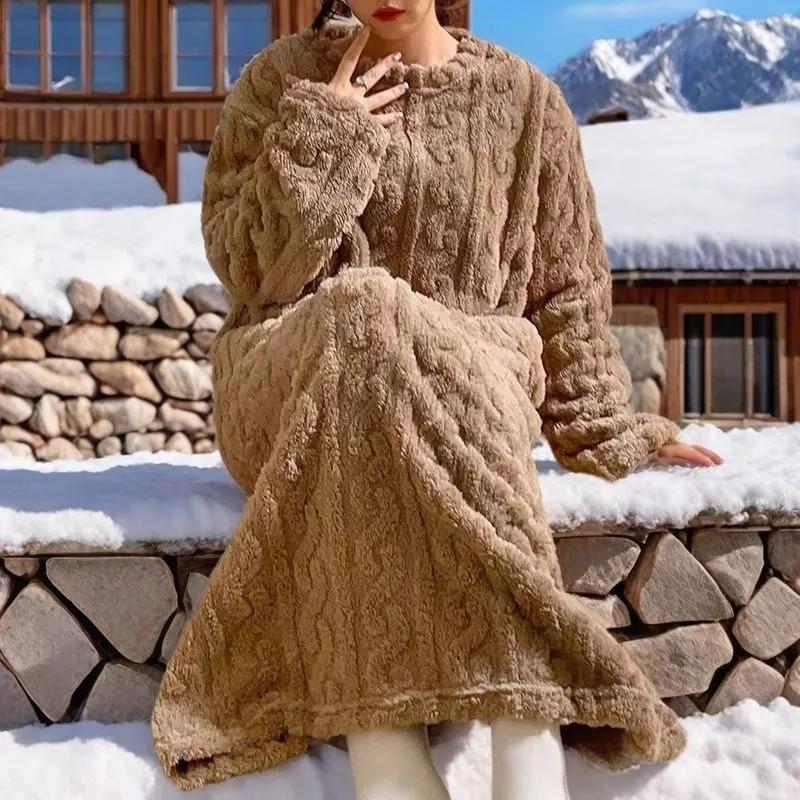 Зимние фланелевые ночные рубашки с длинным рукавом и двумя карманами, женские свободные однотонные пижамы, жаккардовая ночная рубашка, утолщенная теплая ночная рубашка One Size