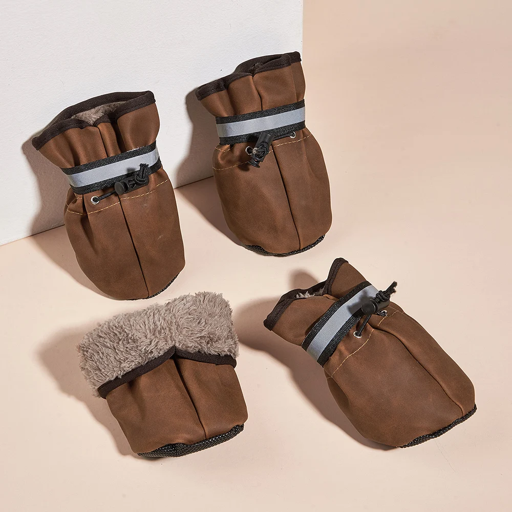 Зимние флисовые теплые ботинки для собак для больших собак из искусственной кожи водонепроницаемые Нескользящие снежные ботинки для Лабра...