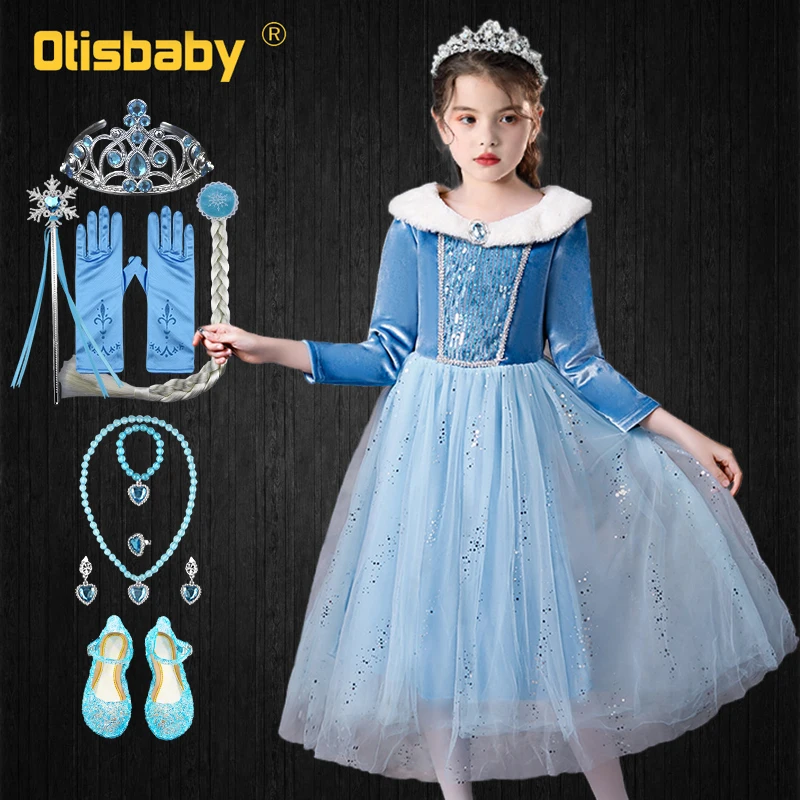 Зимние 2020 рождественские футболки с надписью «Keep, теплое платье с длинными рукавами и Снежная Королева Эльза платье; Изящное платье принцес...