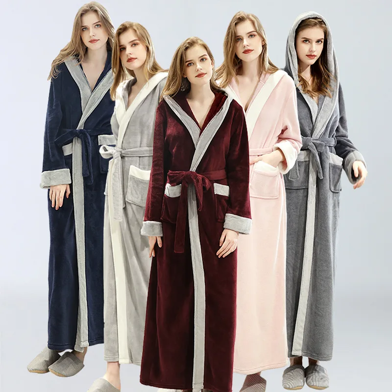 Зимний халат, ночная рубашка с длинным рукавом, женское Фланелевое кимоно, одежда для сна, коралловый флис, теплый Халат с капюшоном