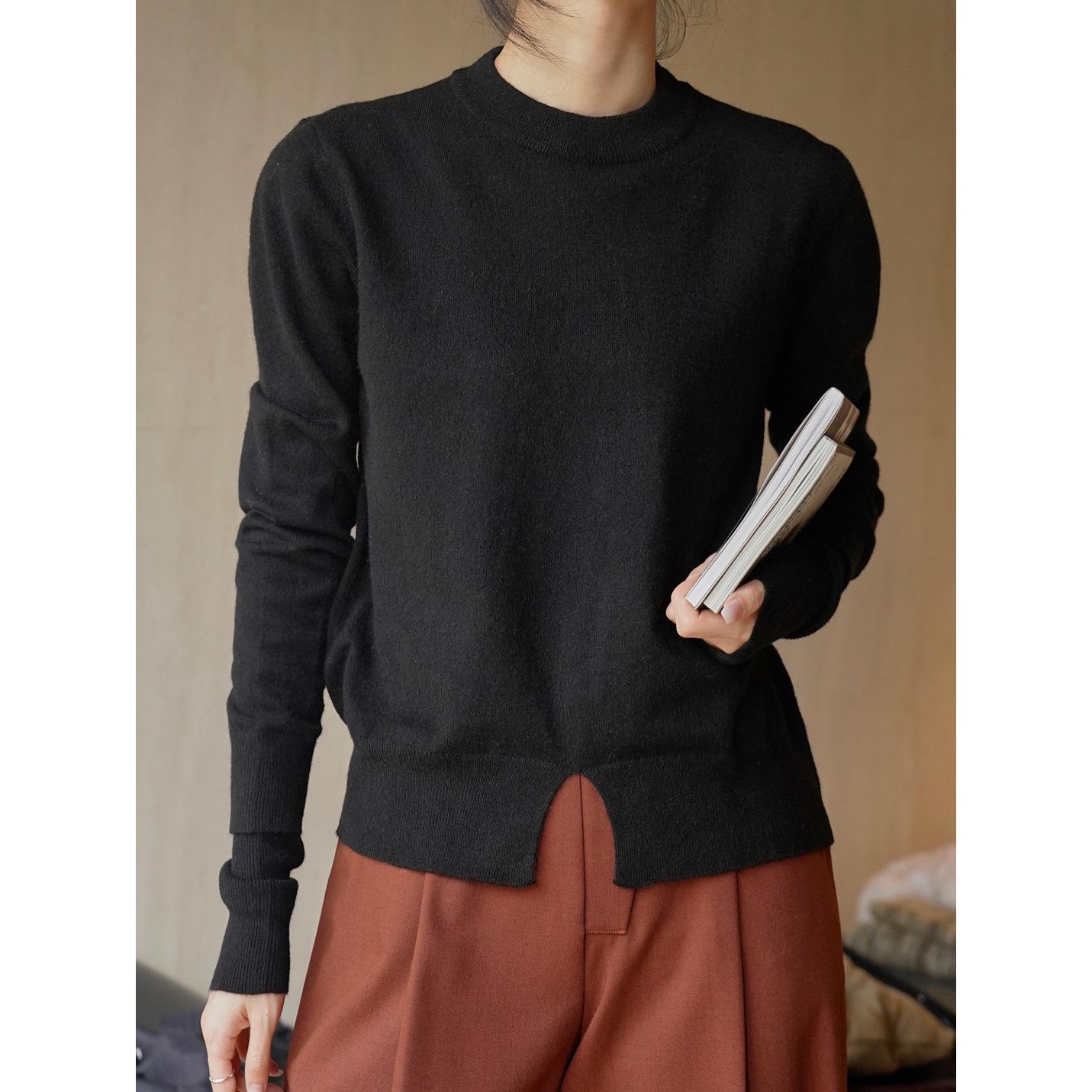 Louvre Winter Korean-Style Wool Sweater: Women s Simple Round Neck, Silhouette Split, Skin-Friendly Top One size