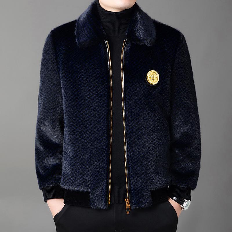 Зимняя Золотая норковая флисовая мужская меховая цельная норковая шуба, теплая норковая флисовая куртка, повседневное модное пальто XXL