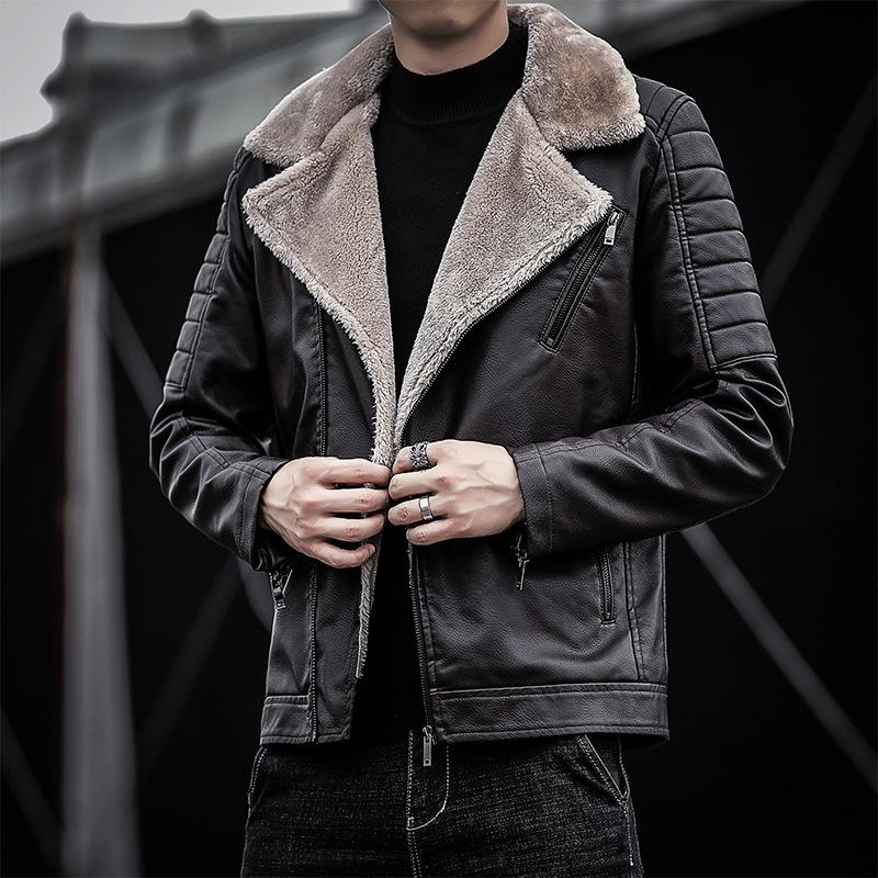 Зимняя бархатная кожаная куртка в корейском стиле, мотоциклетная зеленая, красивая куртка с лацканами, облегающая мужская куртка из искусственной кожи, модная 4XL