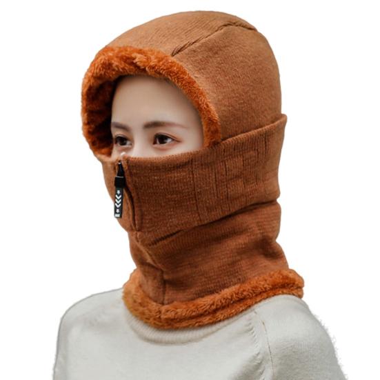 Зимняя велосипедная шапка со встроенным защитным экраном для лица и утеплителем для шеи, застежка-молния, ветрозащитный толстый плюшевый шарф с полной защитой, головной убор для холодной погоды