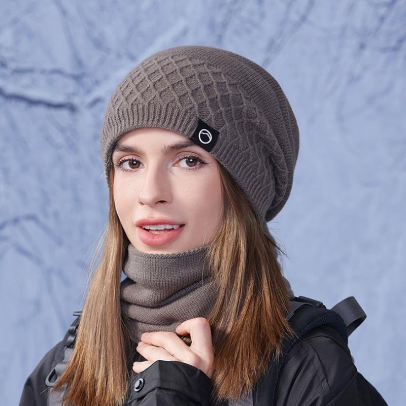 Зимняя ветрозащитная защитная шапка-бини с флисовой подкладкой, теплая шапка, шарф, комплект, женская вязаная шерстяная шапка One Size кофейный
