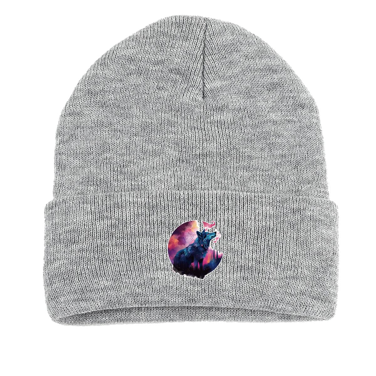 Зимняя вязаная шапка-бини «Волк», Детская шапка «Красная луна», Зимняя уютная стильная вязаная шапка-бини as the picture серый
