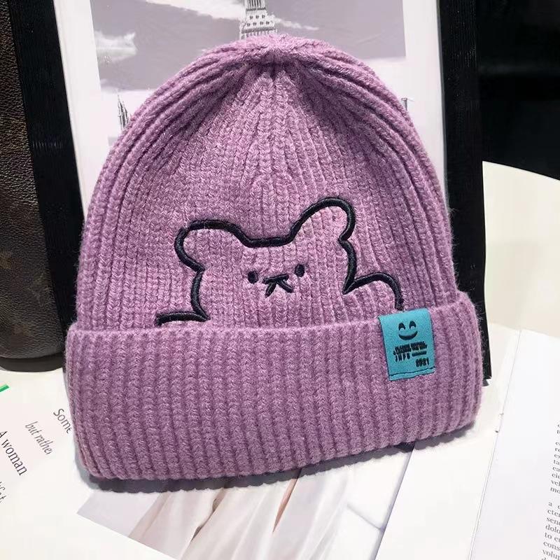 Зимняя вязаная шапка с милым медведем для детей, новая универсальная белая шерстяная шапка, корейская версия, теплая, холодная шапка для женщин average size