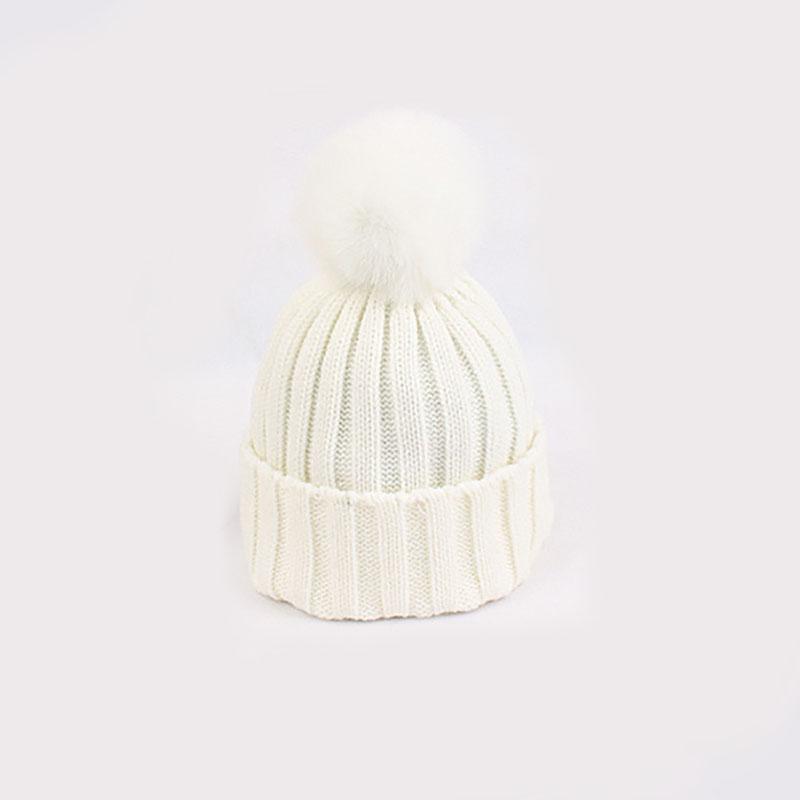 Зимняя детская вязаная шапка с большим помпоном, осенняя теплая шапочка для новорожденных, однотонная, милая, для мальчиков и девочек, чепчик, шапки-чепчики