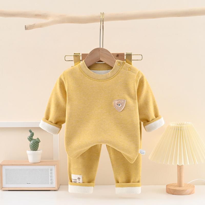Зимняя детская плюшевая и плотная осенняя одежда и штаны, комплект теплой и высокой талии для дома 110