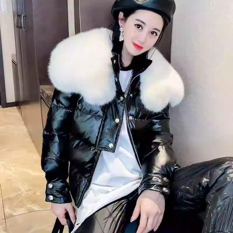 Зимняя женская короткая куртка-пуховик свободного кроя, толстое теплое пальто с оверсайз модой M чёрный