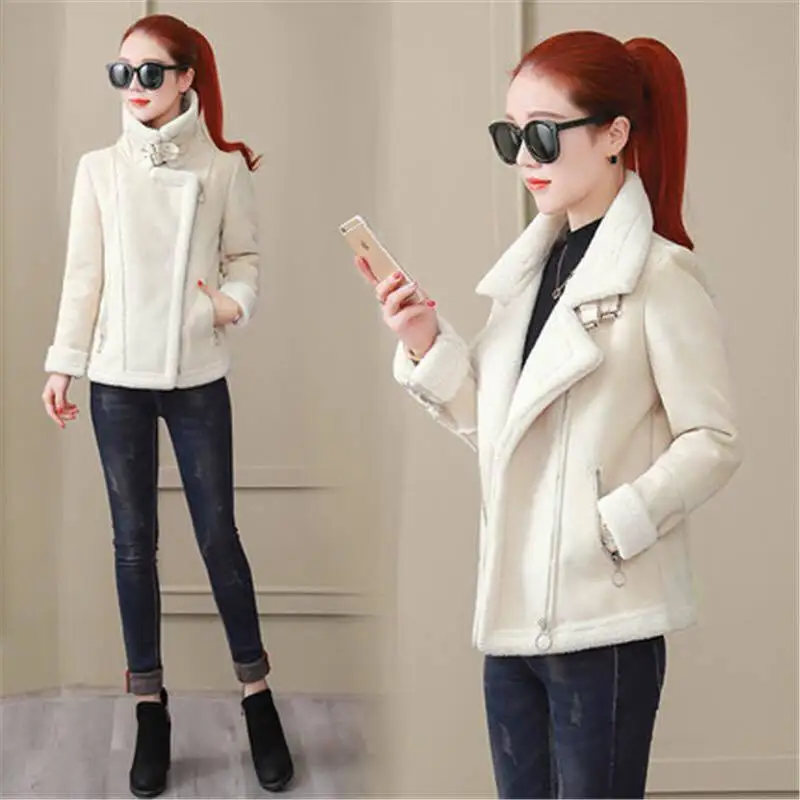 Зимняя женская куртка, Корейская облегающая короткая куртка на молнии с отложным воротником, новинка 2021, Тепловая куртка из овечьей шерсти, женская одежда, пальто N20202