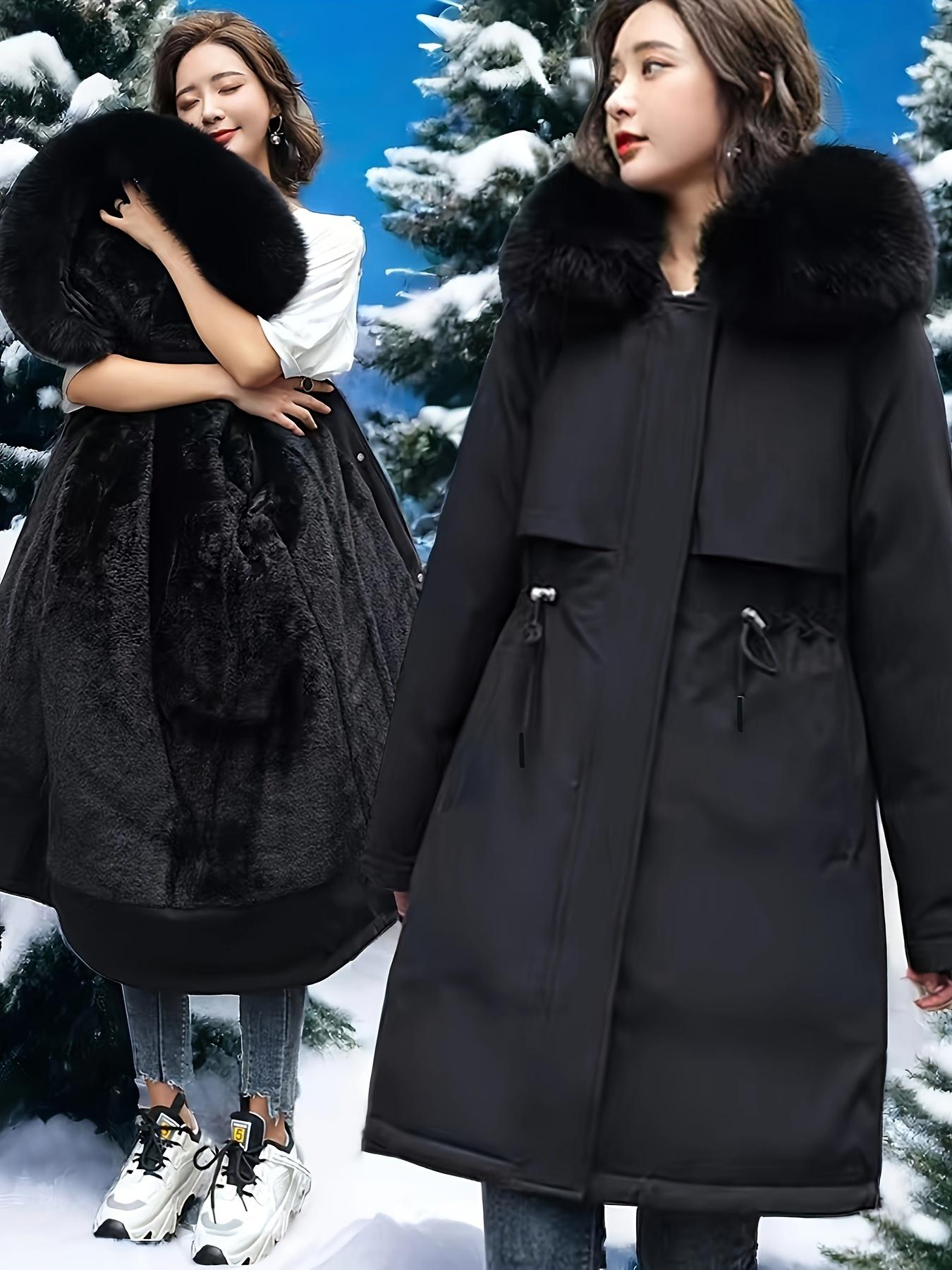 Зимняя женская куртка парка одежда шерстяная подкладка меховой воротник теплое свободное длинное пальто с капюшоном куртка теплая толстая зимняя одежда утепленная парка 3XL чёрный