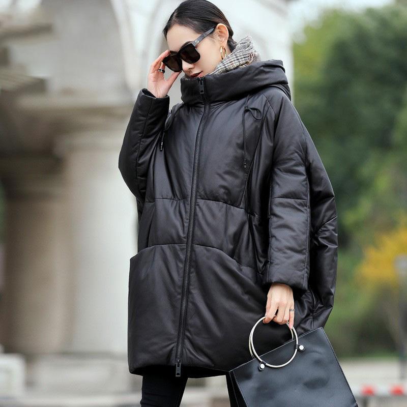 Зимняя женская куртка-пуховик из натуральной овчины первого слоя в корейском стиле, теплая, натуральная кожа, свободная, большого размера L