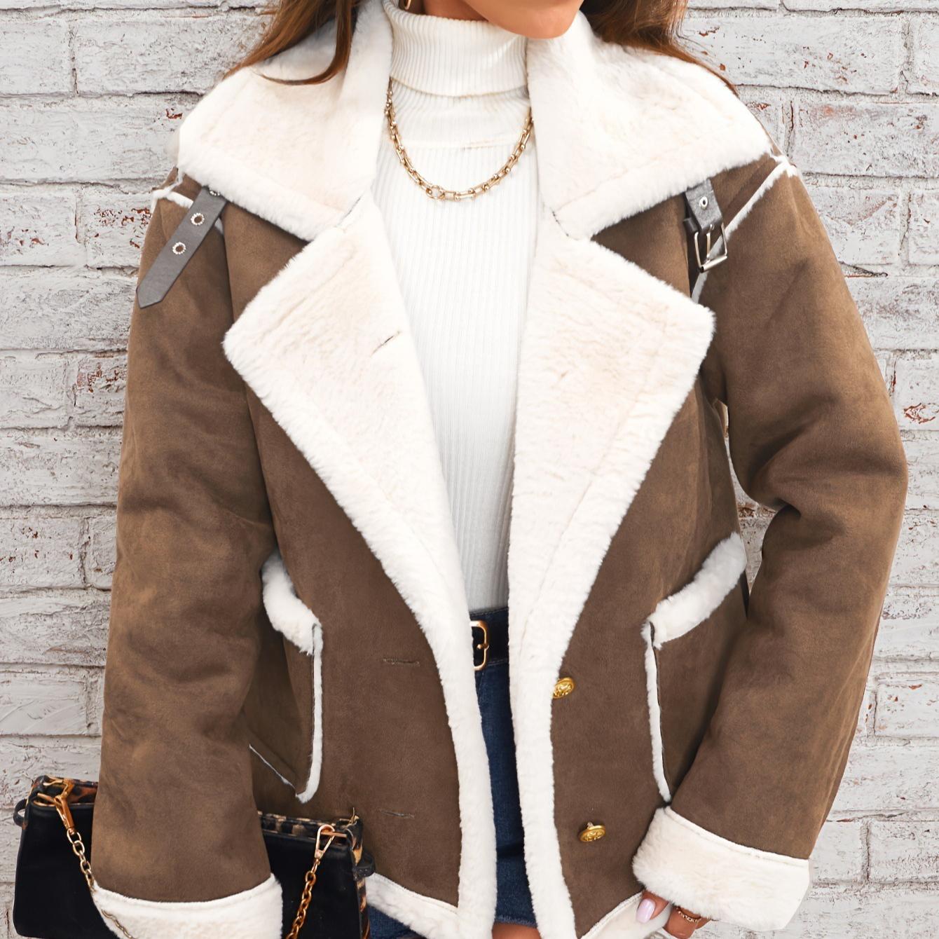 Зимняя женская модная плюшевая куртка с лацканами, теплая повседневная куртка XL