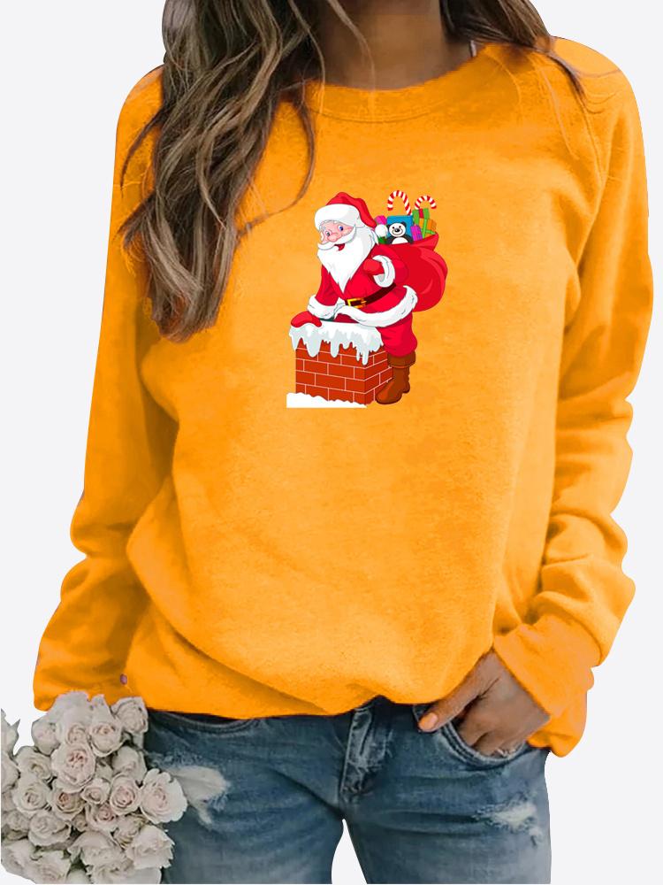 Зимняя женская повседневная толстовка с длинными рукавами и принтом Санта-Клауса, женская свободная футболка с круглым вырезом, топы больших размеров, свитер с длинными рукавами 3XL жёлтый