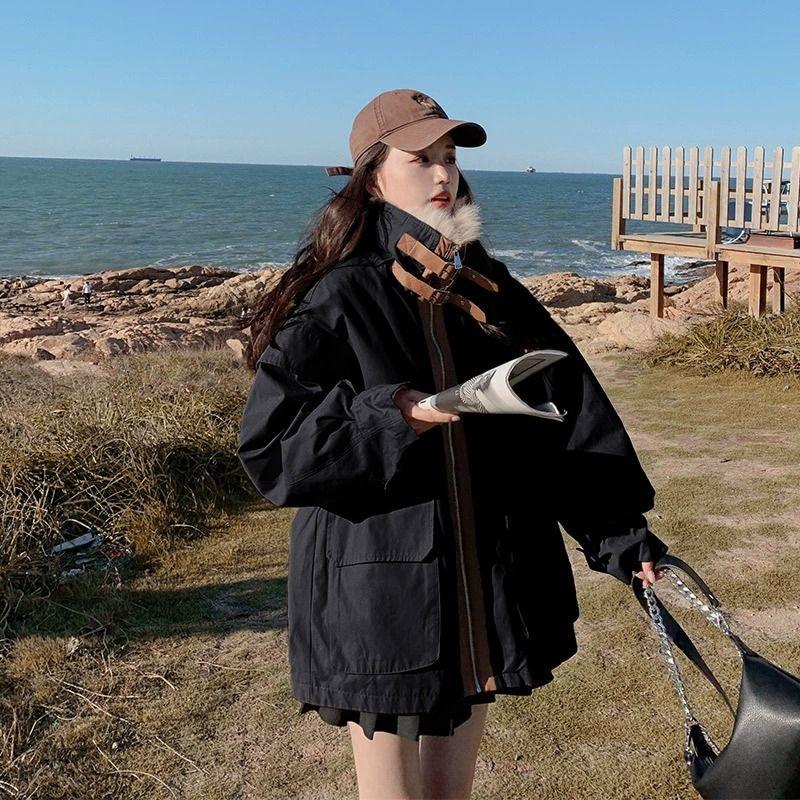 Зимняя женская рабочая куртка Короткая на флисовой подкладке Утепленное хлопковое пальто Корейский стиль XXL чёрный