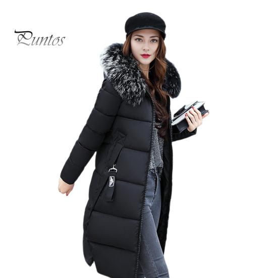 Зимняя женская хлопковая куртка с меховым капюшоном, длинными рукавами, карманами, сохраняющая тепло, длиной до колена, на молнии, стеганое пальто, однотонная ветрозащитная верхняя одежда, парка M чёрный