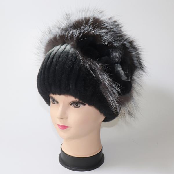 Зимняя женская шапка из 100% натурального меха кролика рекс, женские теплые шапки из натурального меха кролика рекс, хорошие эластичные шапки из натурального меха, теплые шапочки Good elasticity 52cm-60cm белый/темно-синий