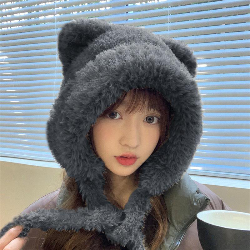 Зимняя корейская версия милой плюшевой шапки с веревкой и бархатной подкладкой, женская мультяшная шапка для защиты ушей, вязаная шапка, теплая шапка для защиты ушей, шерстяная шапка One Size