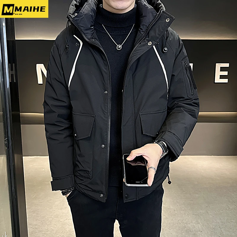 Зимняя мужская короткая куртка 2023, роскошное функциональное пальто на белом утином пуху, мужская пуховая куртка с капюшоном, мужская одежда