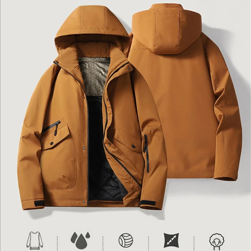 Зимняя мужская флисовая теплая уличная ветрозащитная съемная куртка с капюшоном, мужская однотонная водонепроницаемая повседневная модная куртка на молнии, мужское пальто