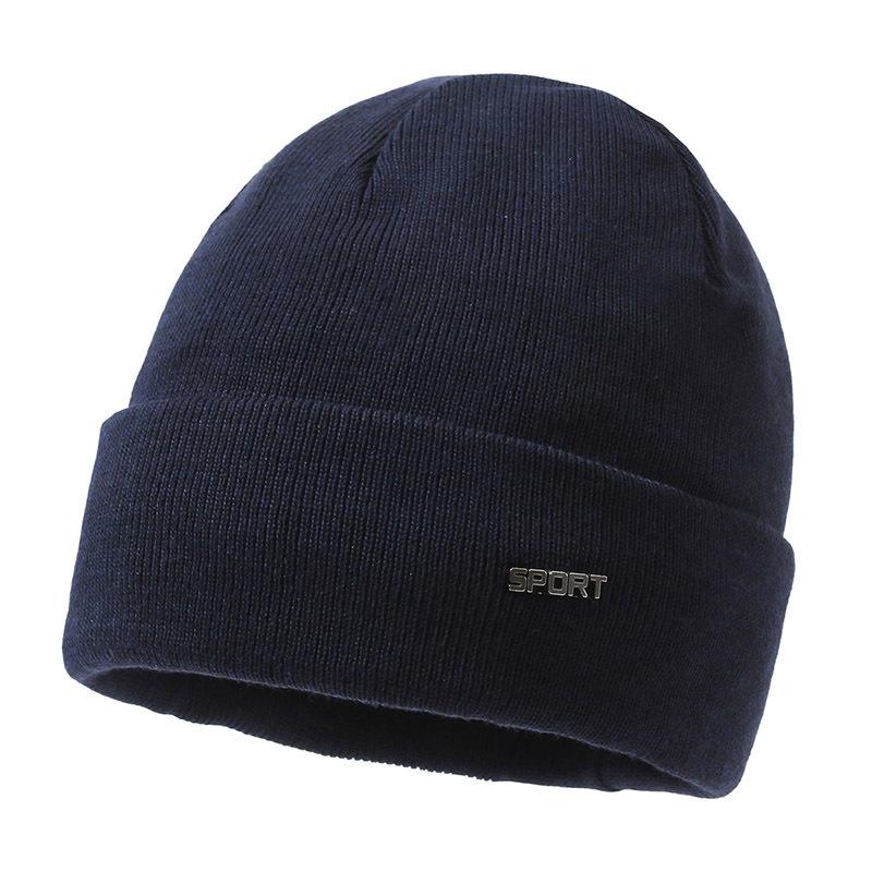 Зимняя мужская шапка Лыжная теплая бархатная толстая шерстяная шапка Хлопковая уличная езда с защитой ушей Вязаная шапка с рукавами Шапочки Skullies Шапки с напуском для лыж тёмно-синий