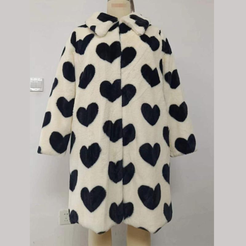 Зимняя неделя моды культовый бренд мода длинная любовь сердце узор высокое качество искусственный мех кролика пальто женская куртка плюс размер 5XL 4XL белый