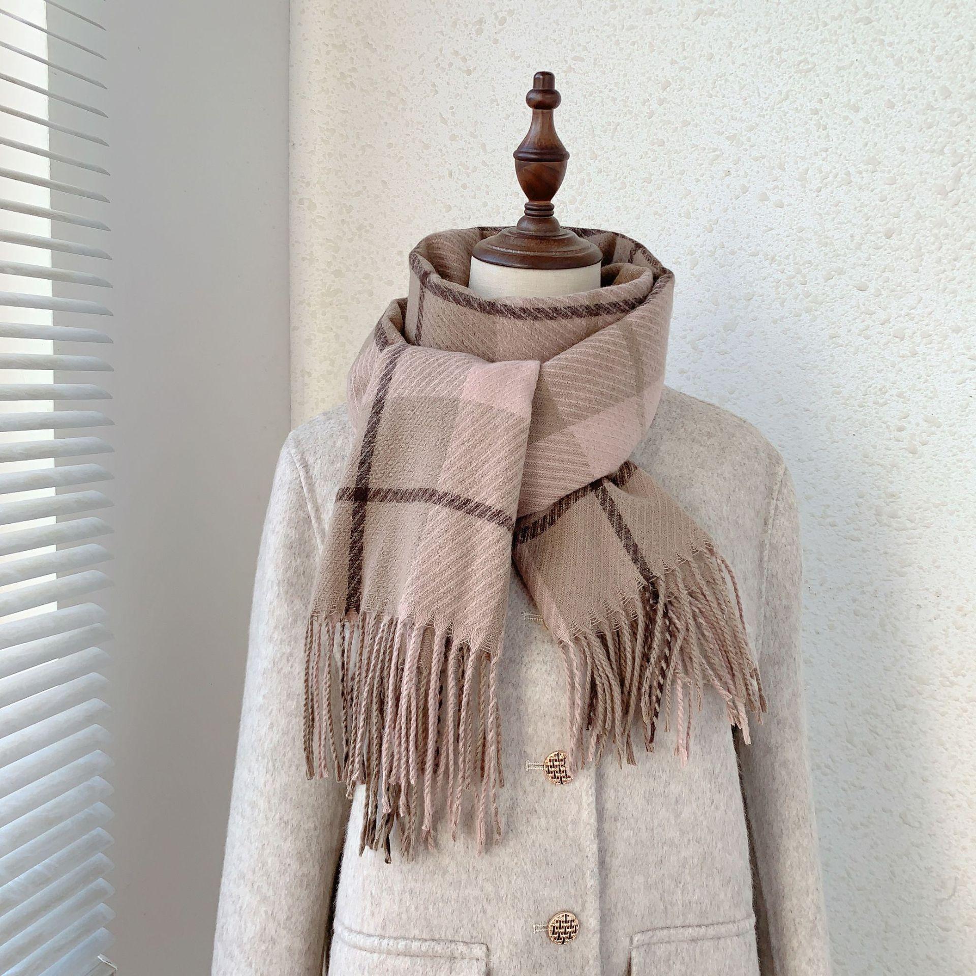 Зимняя новая высококачественная имитация кашемира с крупной сеткой, универсальная теплая толстая студенческая шаль для женщин 2024 года 185*65cm